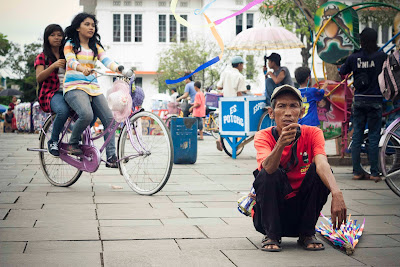Later in the day we ended up at the biggest shopping mall in the Southern hemisphere. I hated it. I did not come to Indonesia to be in a massive Western mall surrounded by expensive shops and American cafes. It was weird, I didn’t even feel like I was in Indonesia and the most bizarre thing was stepping out of the mall onto the streets of Jakarta surrounded by pollution, people and poverty. But I think I will be back there soon enough, I will crave the Western things that I am trying to avoid. But on Saturday I was in and out of the mall pretty quick, although I did stay to try a ‘cat shit’ coffee…. Which is actually called Kopi Luwak, it is consumed by a native cat and then pooed out, the beans are then separated from the feaces and served hot and steamy ready to drink, it actually tastes completely normal. It’s the world’s rarest and most expensive coffee. Yessir, I drank it. To escape fake Indonesia we went to real Indonesia; to the Dutch quarter where the locals were preparing for the New Years Eve celebrations. There were market stalls and people everywhere. Locals were riding around on colourful old bikes and lacy straw hats, there was music, dancing, food and craziness, it was like a breath of fresh (polluted) air after the mall.